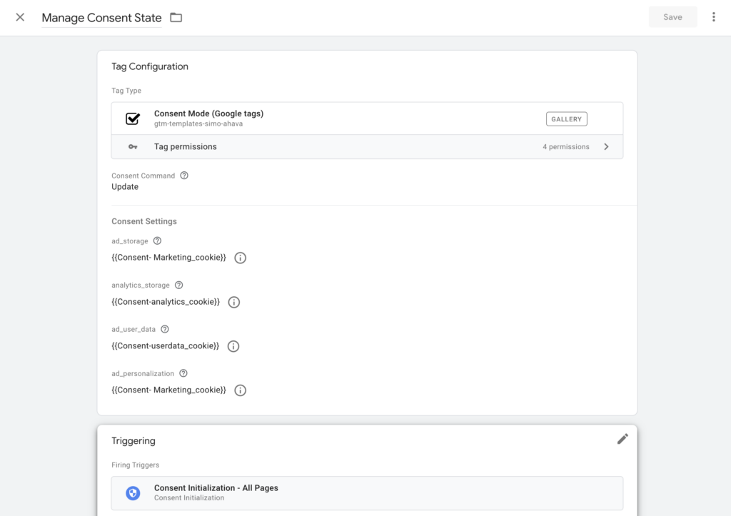 This template offers a more basic approach to Consent Mode. It allows you to: