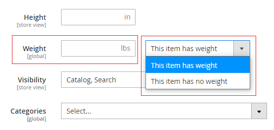 - Step 2:- You will see a dropdown menu alongside the weight option. Select the “this product has weight” option. Look at the below image for reference.