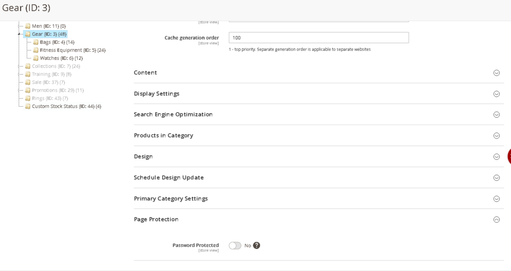 Open any category in Catalog Categories. Enable the Password Protected toggle and save. Every product within that category becomes inaccessible to unauthenticated visitors, they are redirected to the gate page before they can browse any product in the category.