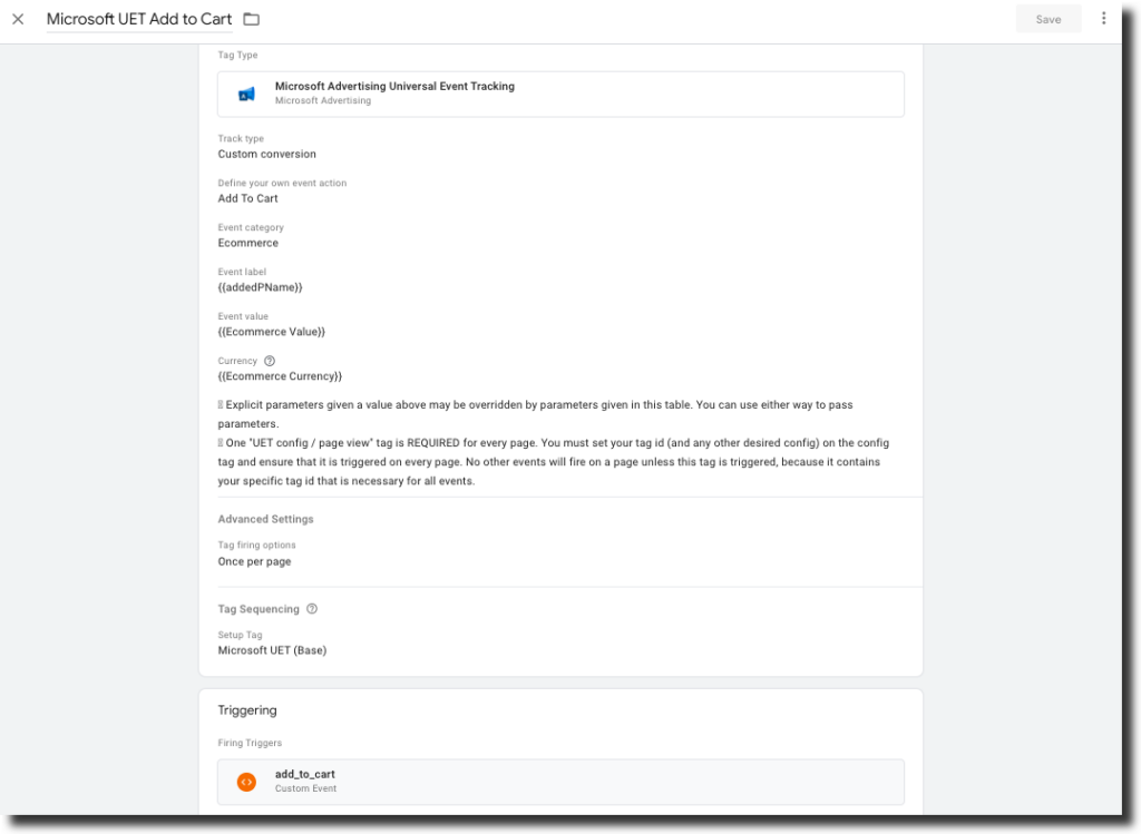 - Check “Don’t fire Microsoft UET Add to Cart if Microsoft UET (Base) fails or is paused”
