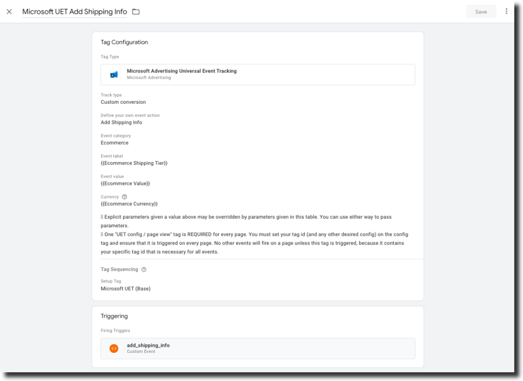 - Check “Don’t fire Microsoft UET Add Shipping Info if Microsoft UET (Base) fails or is paused”