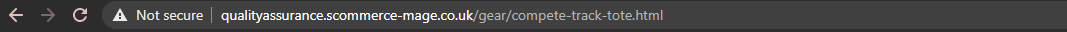 Step 5:- You should see the unique URL for the product on your frontend no matter where you open the product. For instance, first, we open this product by going into Gear>Bags and then clicking on the product. Second, we directly search for the product using SKU. As you can see in the image below both the pages have the same URL.