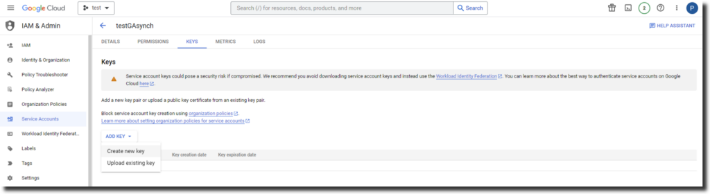 - Click on Create Key from the image above and select json your key file will be downloaded. Place this key file in the VAR directory of your website. Copy the exact name with extension “.json” and input it into the security Key in the configuration.