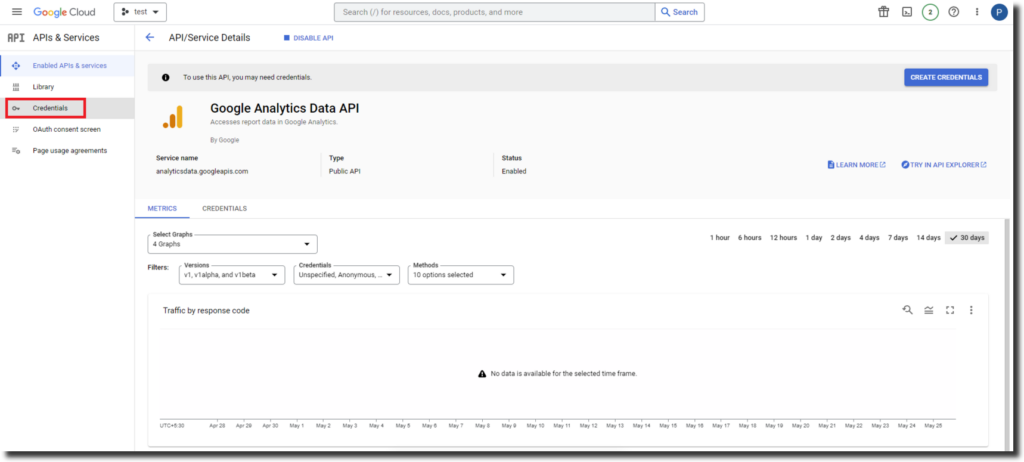 - In the next window search for Google Analytics Data API and then click on “Enable”.