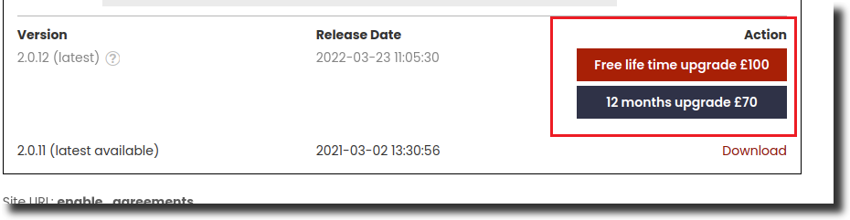 You can opt for 12 months upgrade or free life upgrade for any of our extensions from your my account section. You simply need to login and click on downloadable section from the left hand menu to see "Upgrade" and "Free life time upgrade" options. By simply clicking on any of the two options you will be able to download latest version of the extension